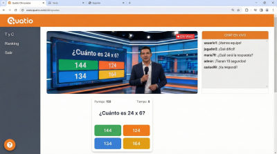 Contact usLive event where a presenter directs an interactive knowledge contest where each participant connects from anywhere. The presenter reads the questions and attendees have limited time to respond. The ranking is defined by those who answered correctly in the shortest time possible. Supports virtual, in-person and hybrid events with streaming or video call.