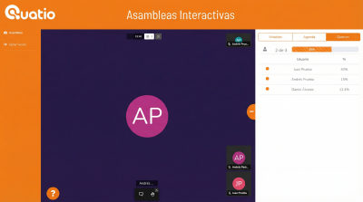 Nuestra plataforma web para la gestión de Asambleas te ofrece apoyo para que organices tus eventos a distancia, presenciales e híbridos, acompañándote durante el ciclo entero del evento. Videollamada donde los participantes pueden utilizar video y/o voz, control de asistencia y quorum permanente, agenda virtual en tiempo real y votaciones por coeficiente de participación o nominales con resultados en tiempo real.