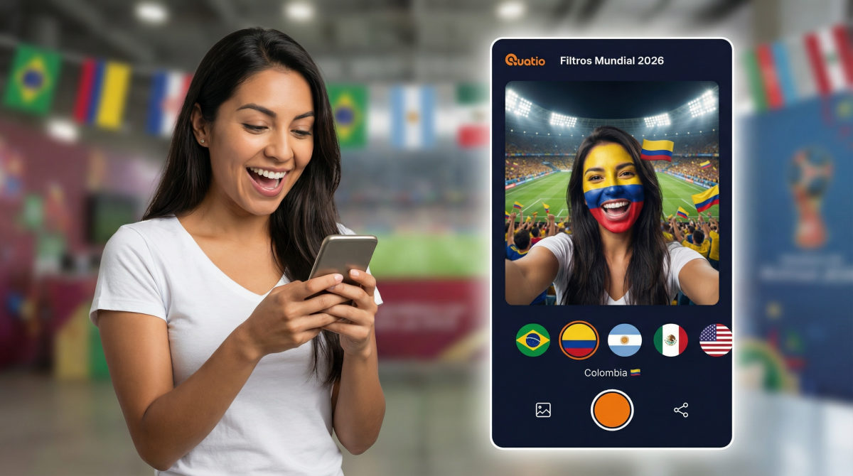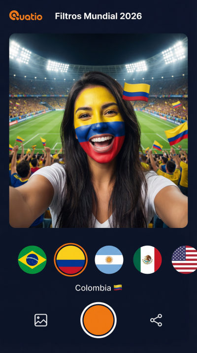 Selfies con filtros AR personalizados para tu marca. Edición Mundial 2026: píntate la cara de tu selección y aparece en el estadio.