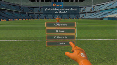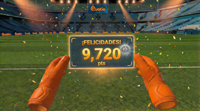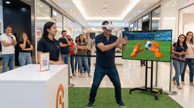 Experiencia inmersiva donde los participantes se convierten en arqueros y deben atajar penales usando sus propias manos, sin controles. La marca se integra de forma natural en el estadio: en el balón, las vallas, la camiseta del cobrador y las pantallas del entorno. Cada sesión dura 2-3 minutos, generando rotación constante y filas que atraen tráfico a tu stand. Incluye módulos opcionales de registro de participantes, ronda de preguntas para multiplicar el puntaje, y ranking en tiempo real en pantalla externa. Ideal para activaciones deportivas, temporada mundialista y cualquier evento donde quieras generar el máximo impacto y capturar datos de tu audiencia.